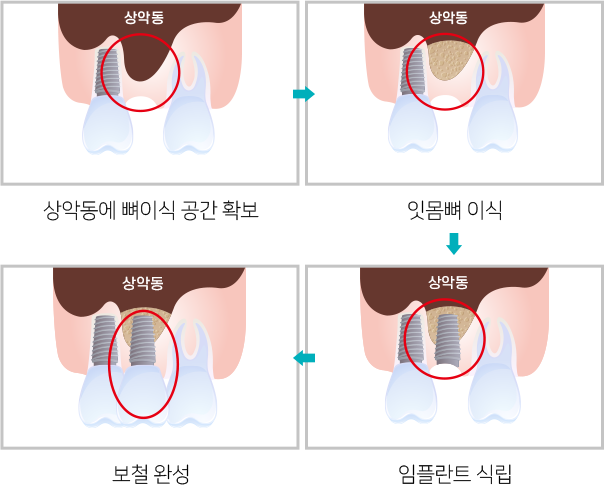 뼈가 남지 않았을 때, 잇몸뼈 위쪽에 위치한 상악동의