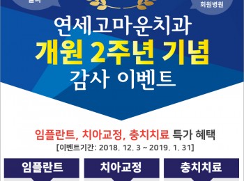 • 개원 2주년 기념 임플란트, 치아교정, 충치치료 감사 이벤트 안내