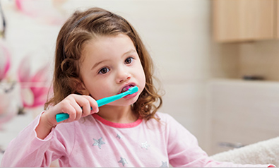 전동칫솔은 일반적으로 성인의 강도에 맞추어져 아이에게 사용하기 강한 칫솔모가 대부분 이며, 스스로 양치하는 습관을 잡아주는 것이 중요하기 때문에