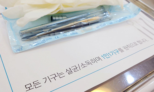 - 치과용기구는 7단계 소독 과정을 거친 후 1인 1기구를 원칙으로 합니다.